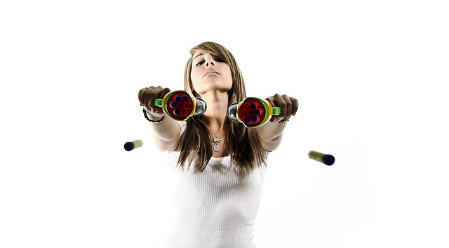Seems all the girls have guns now. Nerf guns, that is. But my daughter won’t be content with the little manually powered pump action gun. See, my daughter aspires to be a ninja like the ones in those bad Asian action movies. She’s already well on her way. Combining her gymnastics training with a friend’s Nerf gun, she’s turned target practice into something out of The Matrix.