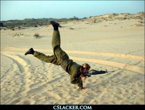 This cartwheel/weapon maneuver could well prepare her for a career in the military.