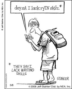Matt, who writes like he talks. Matt sits in the back, in the corner, a skinny young guy in a baseball cap. Matt is having a hard time reconciling his own style with how I want him to write his essay. Matt writes extremely casual prose. He writes “alot,” a lot. He never bothers to capitalize the pronoun I. In his concluding paragraph, he uses the phrase “i mean yeah” to create emphasis in the middle of an important run-on sentence. The niceties of Standard English are completely absent from his work. However, he clearly understands the assignment, and the ideas in his draft are completely relevant – it’s a diamond in the rough.
